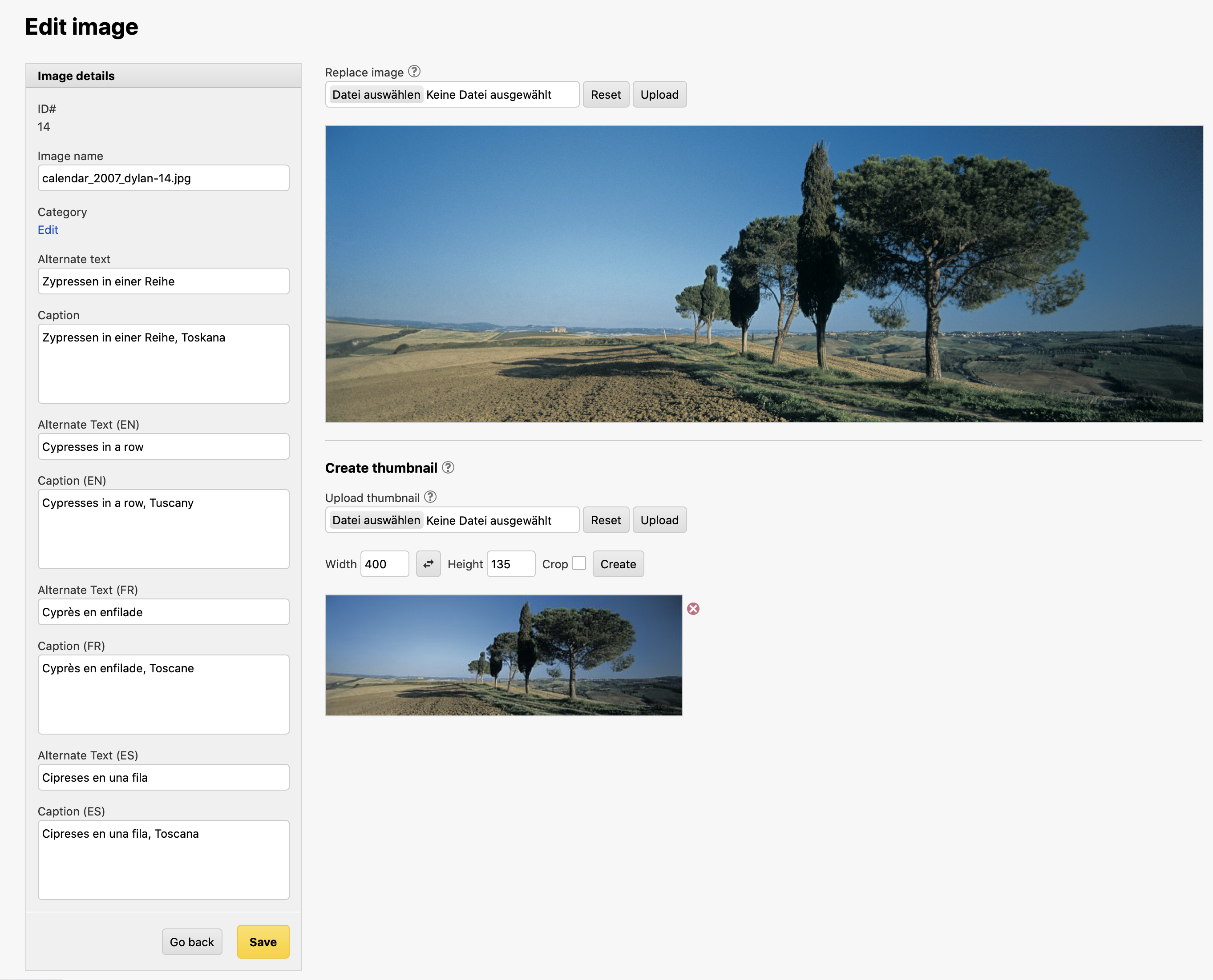 You can then use the language prefix in your code to show different text, show different forms, check if it matches a language code you add with a section_custom_field to a section, and so on.